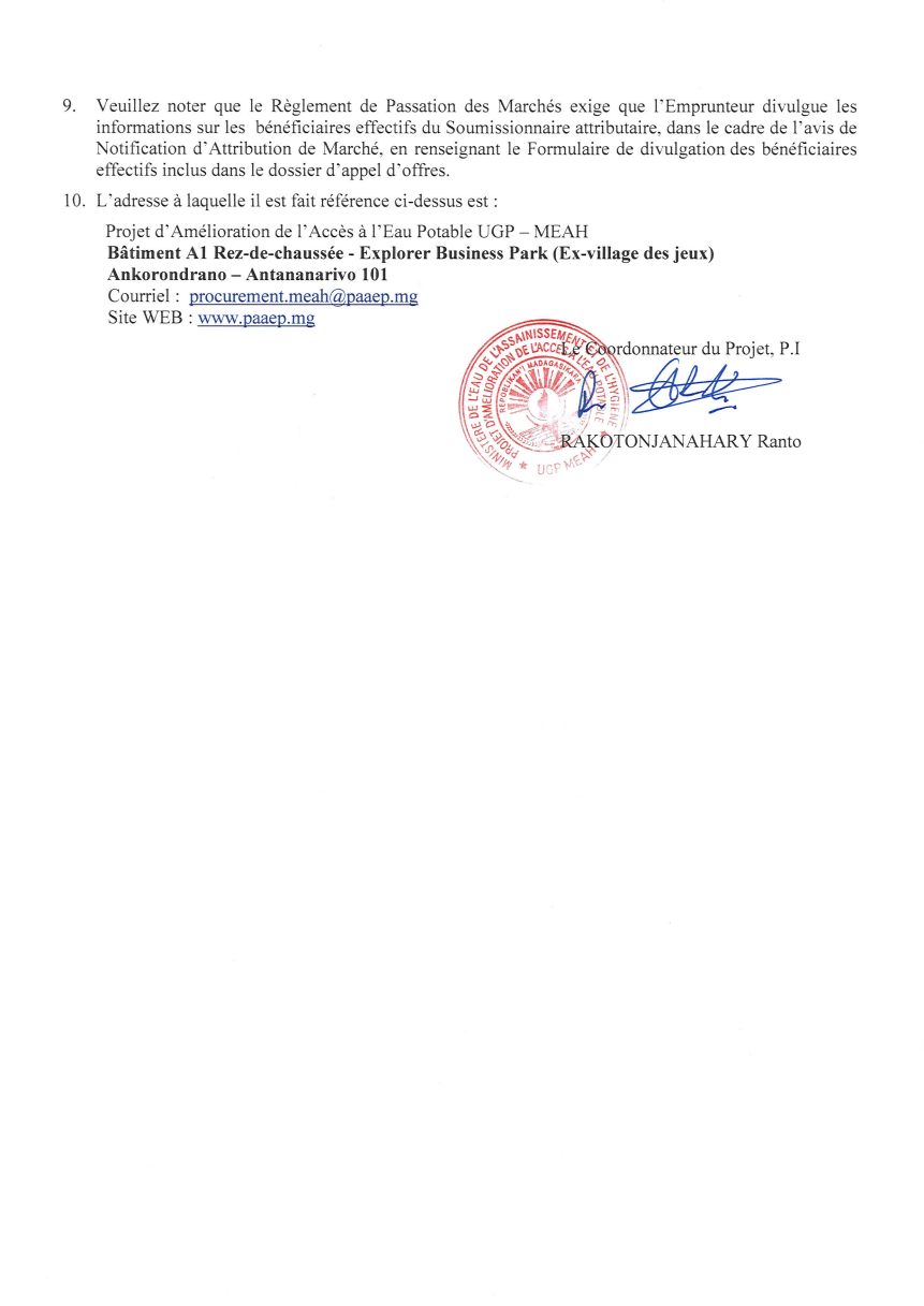AVIS D'APPEL D'OFFRES OUVERT NATIONAL N° 01-06/MEAH/PAAEP-UGP MEAH/TVX/MANAKARA pour TRAVAUX DE CONSTRUCTION/REHABILITATION DE 14 ECOLES ET FORMATIONS SANITAIRES DANS LE DISTRICT DE MANAKARA.