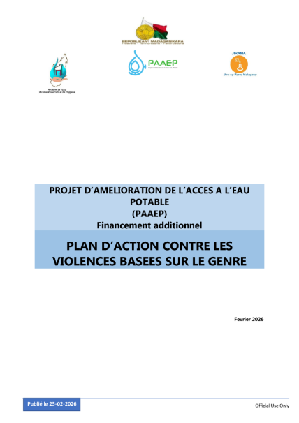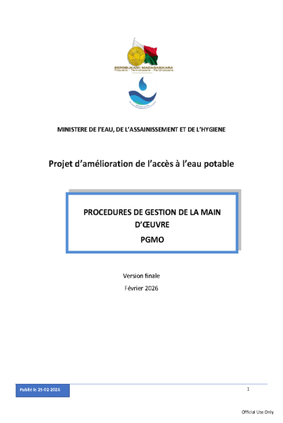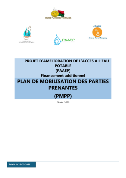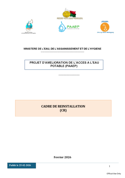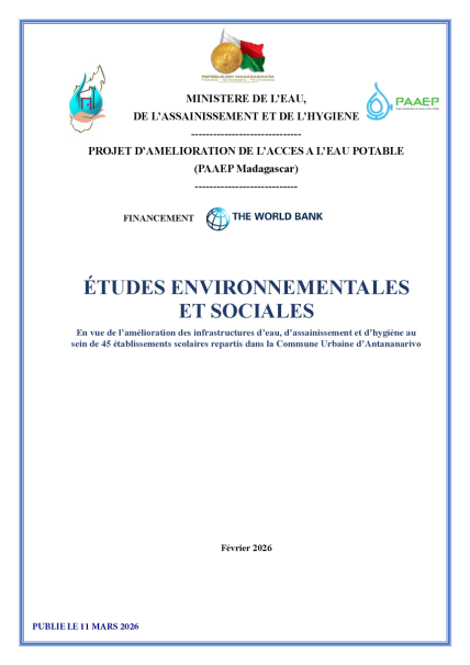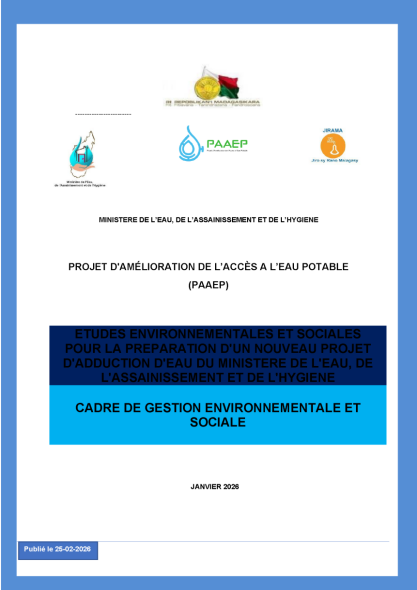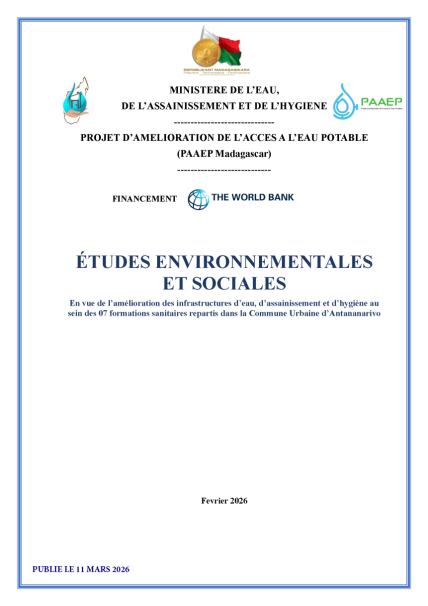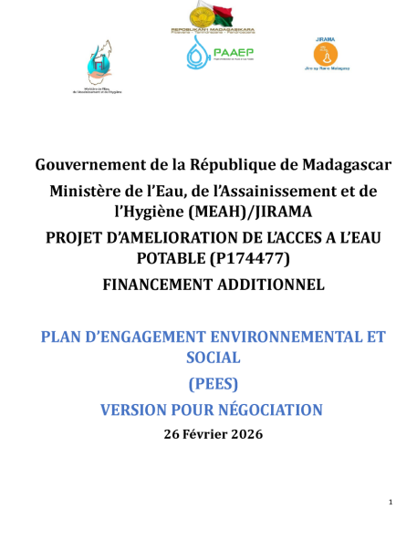 AVIS D'ENGAGEMENT PRECOCE POUR TRAVAUX D'AMELIORATION DES INFRASTRUCTURES D'ALIMENTATION EN EAU POTABLE (A.E.P) DE LA VILLE D'ANTSIRABE - FIANARANTSOA ET MANAKARA